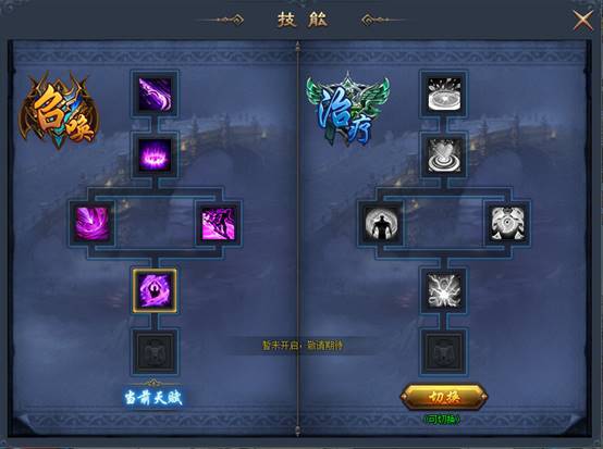 e) 切换天赋后需要等待冷却是时间30分钟,冷却完后可切换天赋