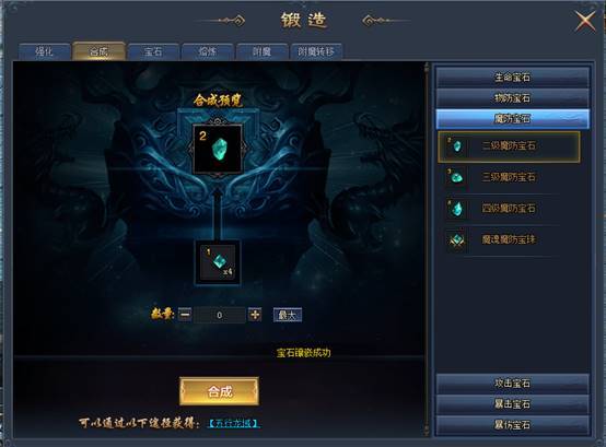 3.玩家通过右侧来选择自己要合成什么属性的宝石