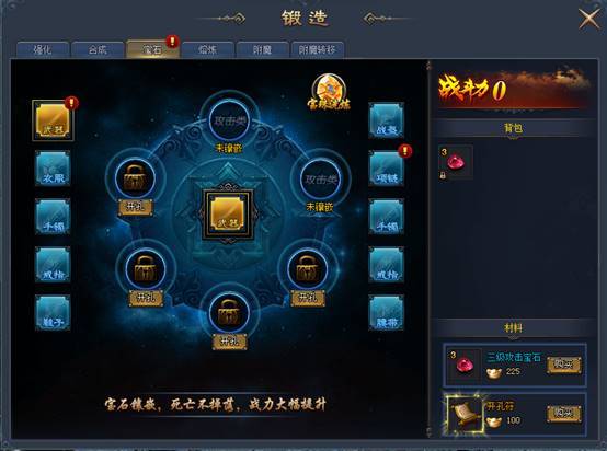2. 每个装备的位置只能镶嵌固定属性宝石